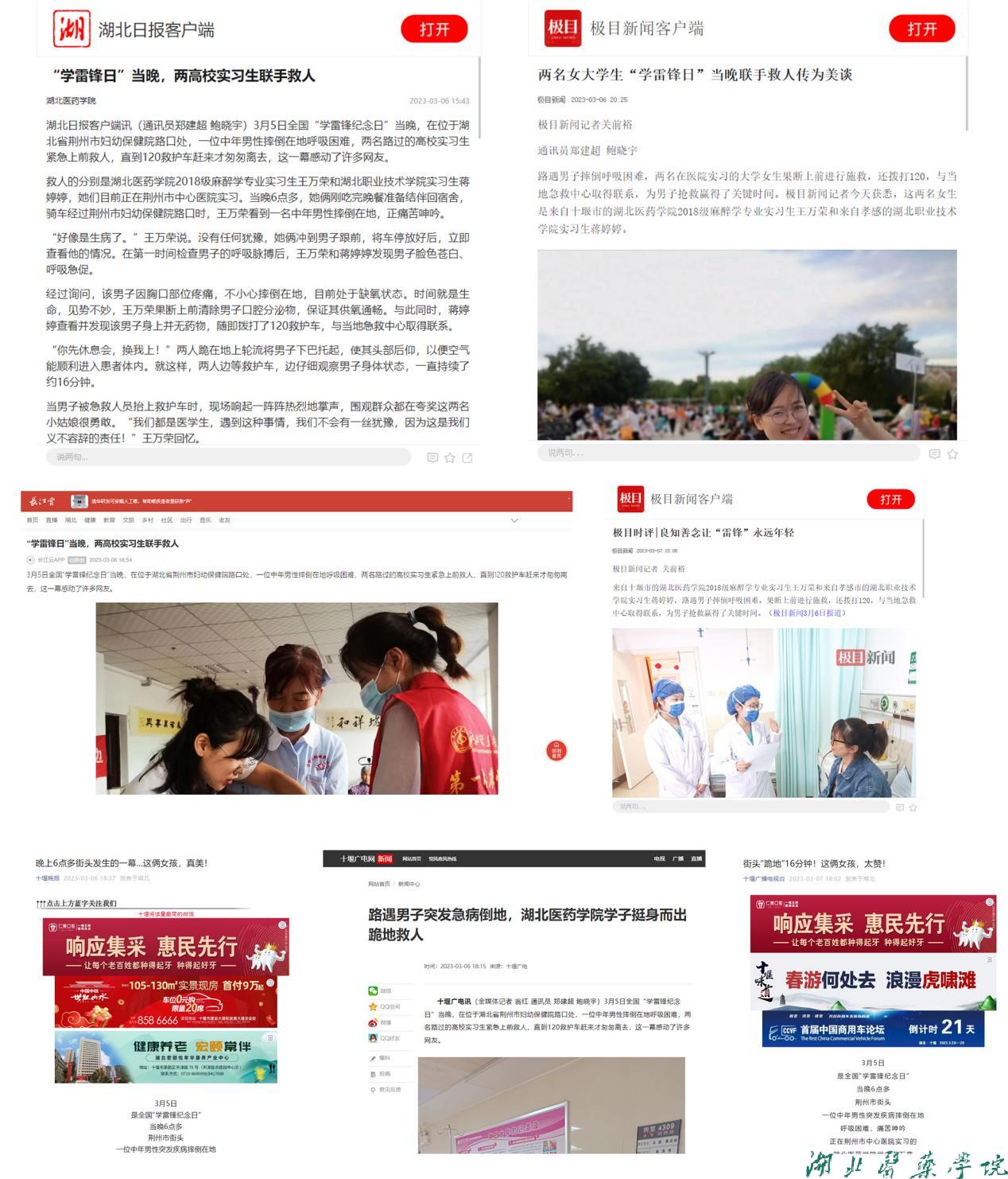 中国新闻网以《男子呼吸困难街头摔倒 两高校实习生联手救人》为题、中国教育报以《偶遇路人急病倒地 湖北两学生联手救人》为题分别对救人事迹进行了详细报道。