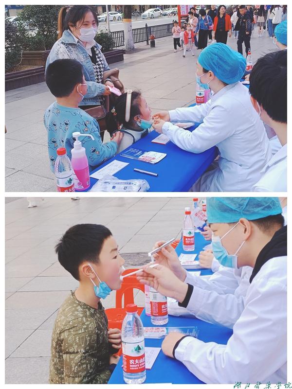 本网讯(通讯员 梅显运 何崇勃)3月5日下午,口腔医学院红色播种机志愿服务队在十堰武商门前开展学雷锋口腔义诊活动。学院口腔一系(附属太和医院口腔医学中心)教师,研究生、本科生近20人参与义诊志愿服务活动。