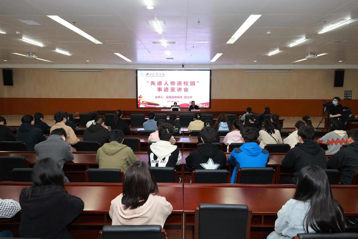 湖北日报客户端讯(通讯员鲍晓宇)2023年4月4日上午,湖北医药学院开展“先进人物进校园”事迹宣讲会,第十二届全国人大代表、第二届全国道德模范、全国三八红旗手、湖北职业技术学院青年教师谭之平受邀来校,将她感恩、励志的故事讲与湖医药师生听。该校多功能厅座无虚席,200余名师生全神贯注地听取谭之平催人泪下、拼搏奋进的人生经历,与湖医药师生共勉之。