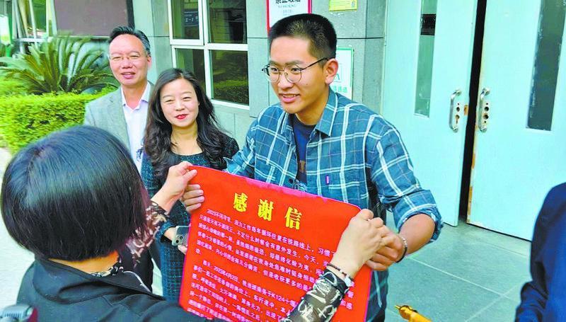 王智立的辅导员王海娇说,要不是锦旗送上门,大家还不知道王智立是救人英雄。