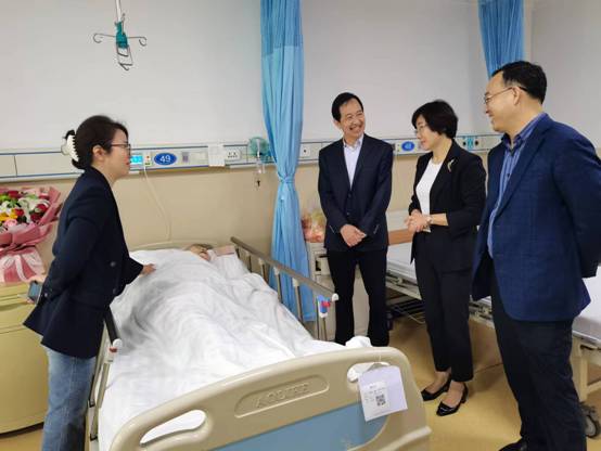 在病床前,校领导向陈怡敏教授表达诚挚的关心和问候,详细向医生询问陈怡敏教授的病情及治疗情况,感谢陈怡敏教授为学校事业做出的努力和贡献,嘱咐要保持乐观心态,积极治疗,安心养病,并祝愿陈老早日康复。