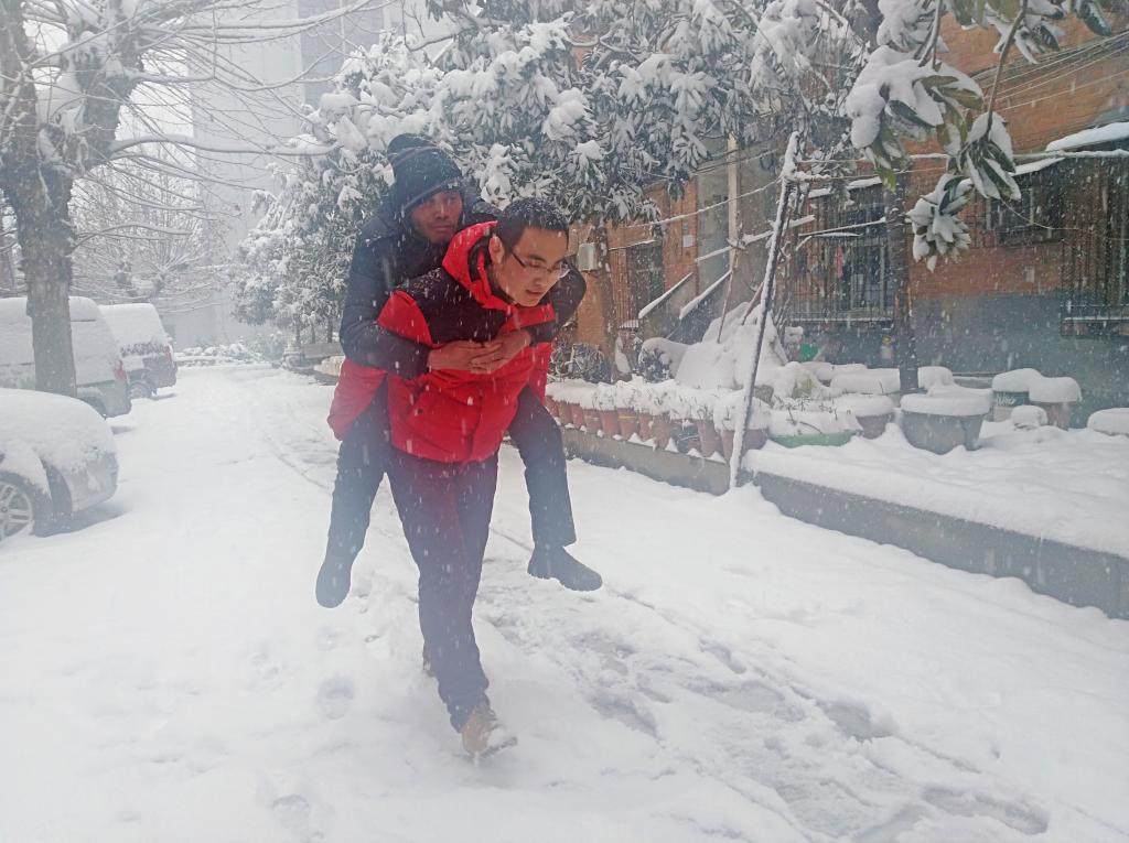 2015年父亲孙绍军在一次工地事故中摔断了腿。他把父亲接到十堰来,求医问诊,陪伴照顾,精心护理。2018年1月,十堰天降大雪,他怕雪地里轮椅打滑,就背着父亲上楼下楼,在6平方米的租居小屋与医院之间去去来来,做一项又一项检查。大雪埋路,一步一滑,他将父亲背起,走得小心翼翼,没几步就气喘吁吁、大汗淋漓。