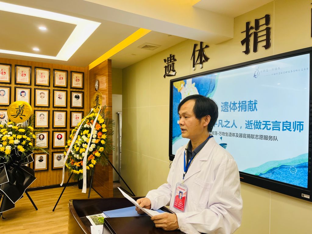 起初,十堰的遗体捐献场地条件简陋,只有一个遗体放置台。为了让捐献者在世人面前更受尊重,也让逝者家属更加理解捐献者的遗愿,2018年2月,李勇向学校申报提出筹建遗体捐献文化室,当年4月正式落成。此后,他多次与十堰市红十字会沟通协调,同年6月,十堰市红十字会正式授牌成立湖北医药学院遗体捐献接受站。这里不仅陈列了捐献者的遗像,还记录他们的生平简介。大爱无言,奉献无声。李勇在人体解剖课上常对学生说:“只有刻苦认真学习,才能表达对遗体捐献者深切的缅怀和最崇高的敬意。”