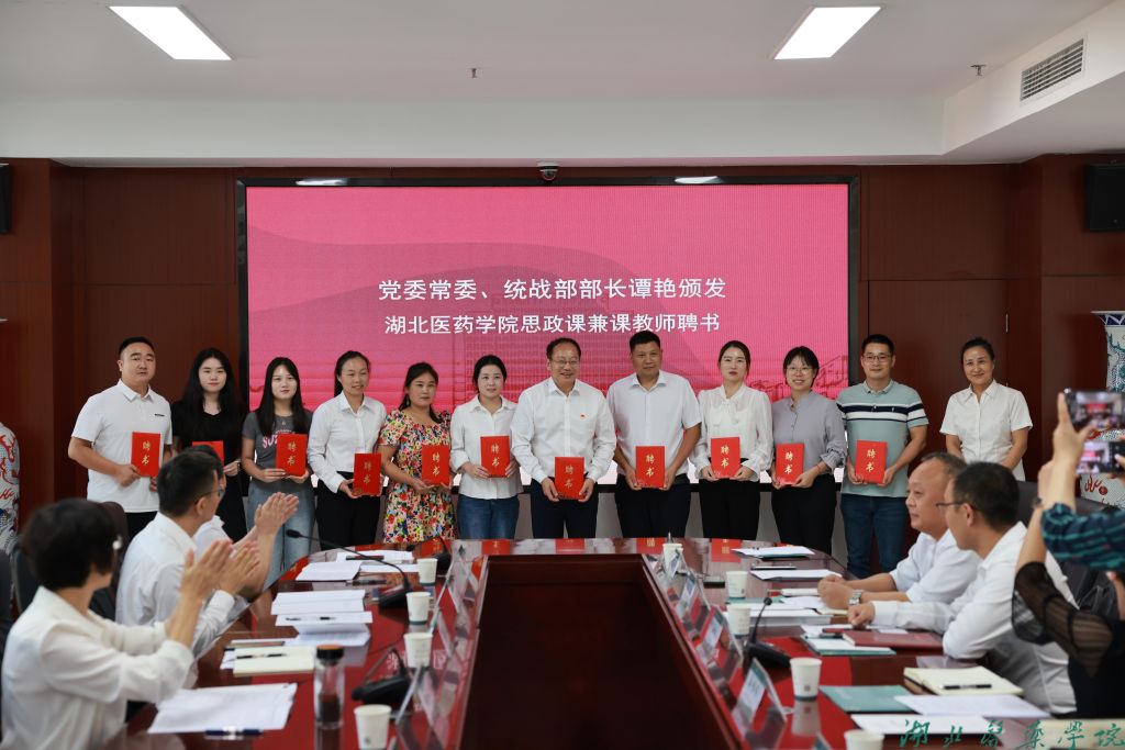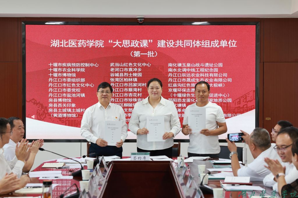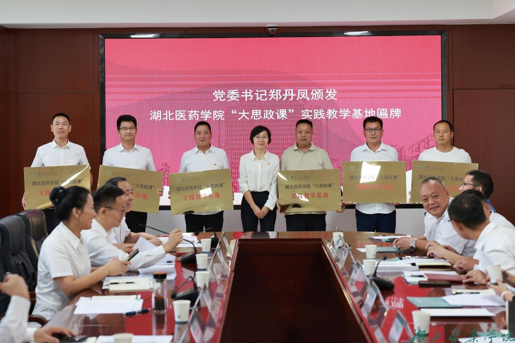 座谈会上,党委书记郑丹凤颁发湖北医药学院大学生思想政治教育实践基地匾牌;党委常委、统战部部长谭艳颁发湖北医药学院思政课兼课教师聘书;党委常委、组织部部长张海蛟与基地共同签订《共建大学生思想政治教育实践基地合作协议》。