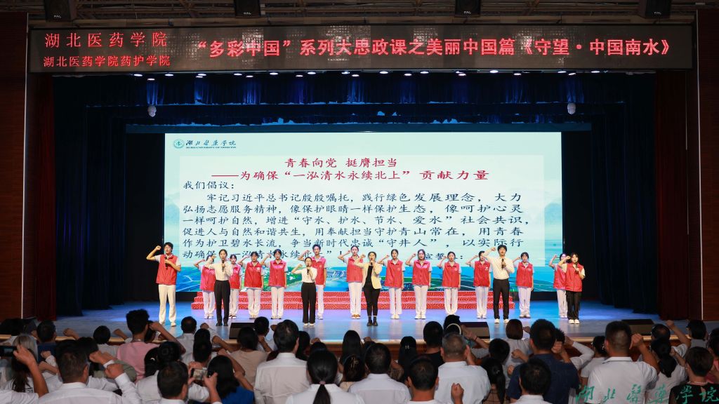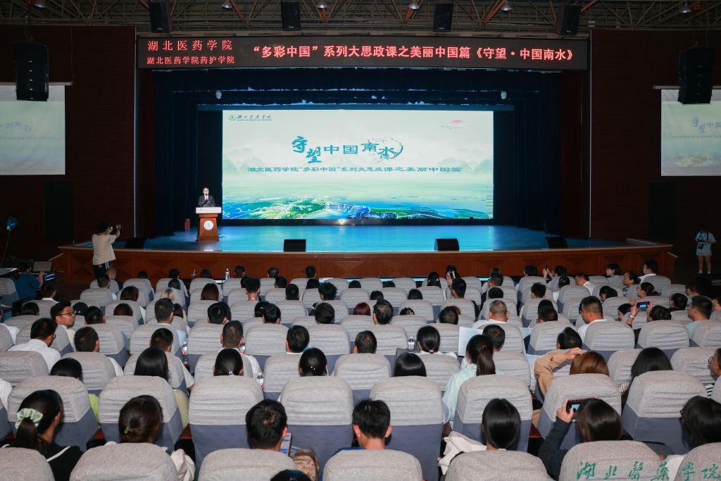 本网讯(文/黄松鹤 龚迎琪 图/学生通讯社)一城春色半城水,青山入眼皆成画。9月25日,湖北医药学院特别策划制作的“多彩中国”系列大思政课之美丽中国篇《守望·中国南水》在该校学子会馆三楼倾情开讲。来自京堰两地的高校教师、志愿者、企业家、农民、思政辅导员、理论宣讲员等各行各业人士登上该校大思政课讲台,为现场近两千名师生、线上直播近万名观众讲述了南水北调中线工程通水10周年来,京堰人民守护绿水青山、护好一库净水,将大爱融入一泓清水的动人篇章。