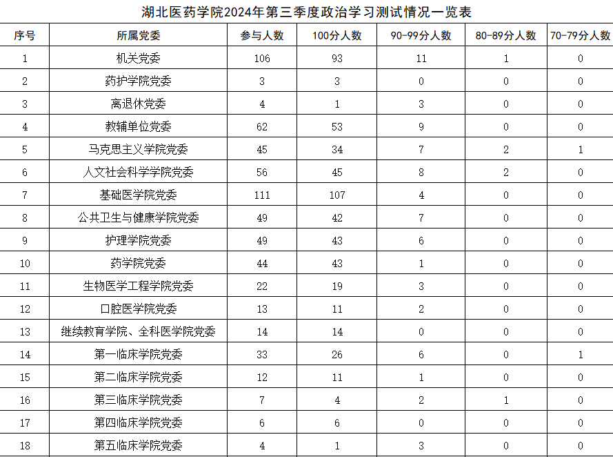 湖北医药学院2024年第三季度政治学习测试情况通报