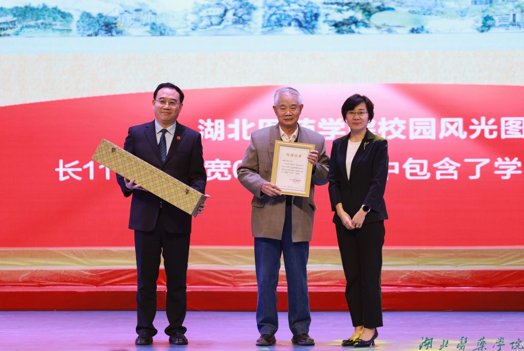 除主讲人分享故事外,课堂上还有情景舞蹈《革命人永远是年轻》、音诗画《老师,谢谢您》、歌曲《少年般绚丽》、大合唱《祖国不会忘记》等精彩节目穿插其中,将思政教育与文艺表演有机融合,既丰富了课堂呈现的形式,又增加了思政教育的温度。思政课开讲当日恰逢湖北医药学院建校59周年校庆,曾孔生教授将自己亲自绘制的长11.8米、宽0.6米,包含学校11幅场景的巨幅画作《湖北医药学院校园风光图》捐赠学校,为建校60周年献礼。曾孔生教授一生为校,用实际行动表达对学校的拳拳之爱深深感动现场师生。