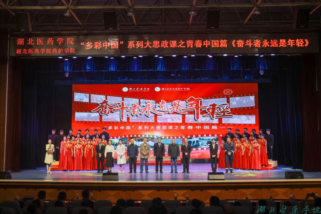 本网讯(通讯员 黄松鹤 陈盈盈 高达 郑怡琳 李佳仪 杨贝熙)11月8日晚,湖北医药学院“多彩中国”系列大思政课之青春中国篇《奋斗者永远是年轻》,在该校学子会馆三楼倾情上演。这堂课的主讲人既有年过八旬、白发苍苍的老教授,也有作为中坚力量的中青年教师、临床一线医护人员,还有朝气蓬勃的00后在读大学生。老中青三代人带着交织梦想与奋斗的故事,携手登上思政课讲台,引领3000余名在校大学生感悟“青春中国”的奋进力量。