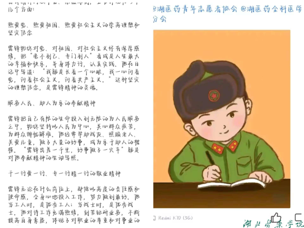 本网讯(通讯员 高航天 黄悦)为学习雷锋精神,激励同学们在志愿服务活动中发光发热,3月5日,全科医学院青年志愿者协会举办“用爱铺就文明路,以行传承雷锋行”主题活动,引领同学们感悟雷锋精神的时代价值,争做新时代的“雷锋式”好青年。