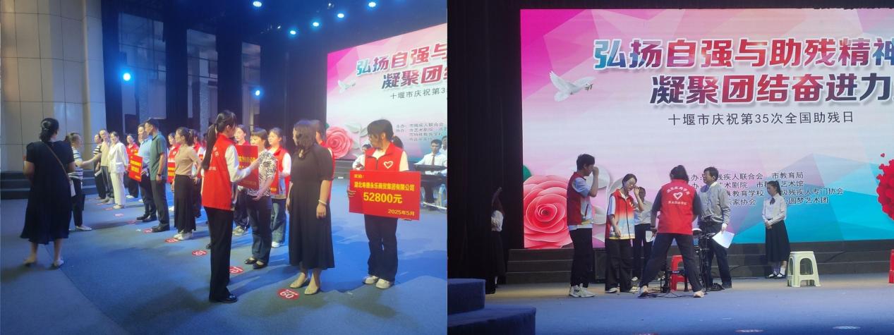 本网讯(通讯员 张瑜)2025年5月18日第35个全国助残日,今年的主题为“弘扬自强与助残精神,凝聚团结奋进力量”。当天上午,第五临床学院普爱志愿服务队前往十堰市艺术剧院参与市残联举行的十堰市庆祝第35次全国助残日活动。下午在文明广场开展以“打破残疾偏见,让尊重与关爱同行”为主题的线下活动,活动累计参与达326人。