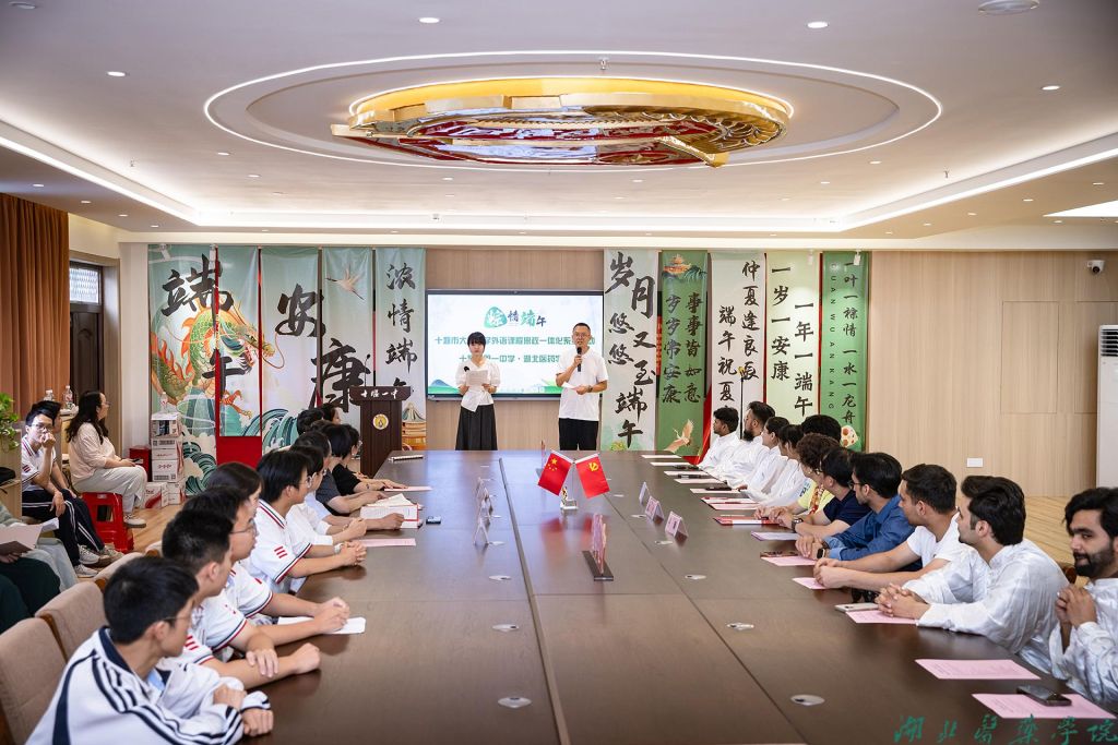本网讯(通讯员 傅珏)2025年5月26日下午,湖北医药学院与十堰市第一中学在市一中南校区团校教室联合举办“粽情端午 中外共融——大中小学外语课程思政一体化建设之文化交流活动”。来自两校的领导、师生及19名留学生齐聚一堂,通过传统文化展示、跨文化互动体验等形式,共庆端午佳节,探索外语课程思政教育与文化传承的创新路径。