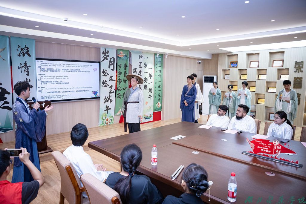 作为活动发起方与组织者,湖北医药学院外语课部充分发挥学科优势,将语言教学与文化传播深度融合。外语课部负责人傅珏介绍:“此次活动是‘用外语讲好中国故事’的教学实践。从指导学生用英语诠释端午文化,到引导留学生通过武术表演实现文化转译,本质上是培养‘既有中国心、又有世界眼’的复合型人才。”他同时透露,两校后续将围绕武当文化、汉水文明等地域特色,开发大中小学贯通的外语课程思政校本资源,推动文化交流常态化。