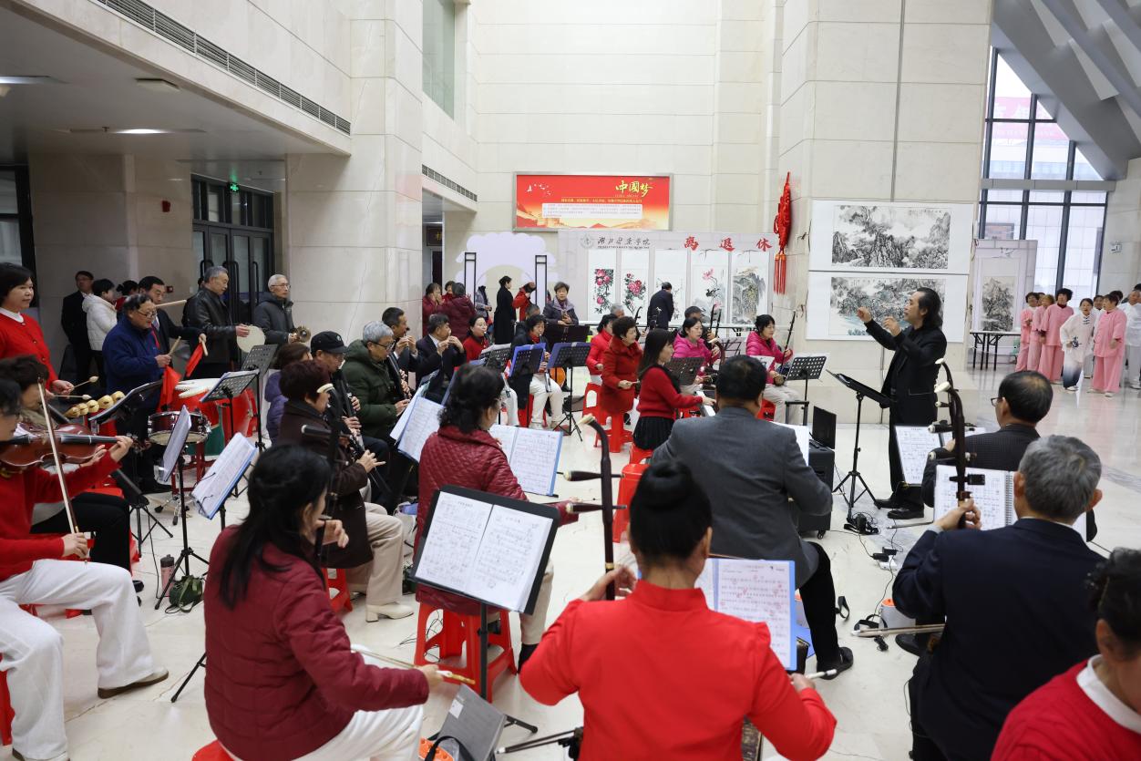 文化演出环节同样精彩纷呈。学生社团带来的古筝、钢琴、竹笛等演奏和离退休教职工的乐团合奏节目交相辉映,呈现了一堂生动活泼、老中青同乐的美育课。