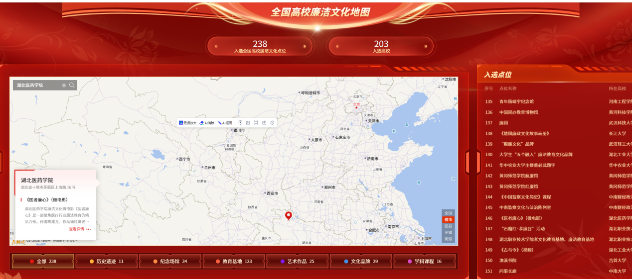 本网讯(通讯员 张光明)近日,教育部第十届高校廉洁教育系列活动“传廉促担当”廉洁文化地图素材征集结果揭晓。我校推送的廉洁文化微电影《医者廉心》成功入选全国高校廉洁文化地图库,此次征集活动面向全国高校广泛遴选具有思想性、艺术性和传播力的廉洁文化点位,经层层推荐与专家评审,最终确定238个代表性项目入库。湖北省共13个项目入选,分布于武汉、孝感、黄冈、荆州和十堰等地,我校成为十堰市唯一上榜高校。(审稿 陈旭)