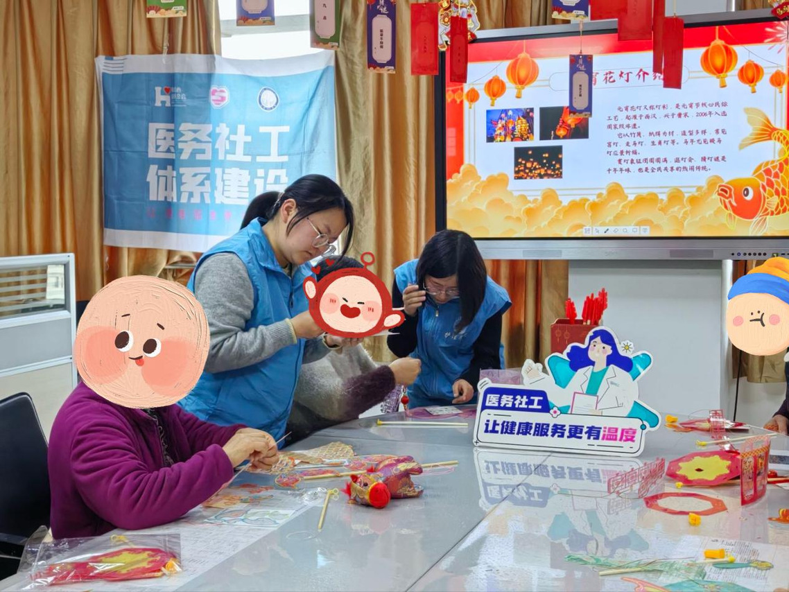 活动以健康宣讲开篇,随后融入猜灯谜、手工锦鲤灯制作、正念冥想三大环节,将传统文化、健康科普与心理疏导有机融合。猜灯谜现场,志愿者与病友、家属围坐探讨、彼此提示,谜面涵盖健康常识与节日民俗,欢声笑语驱散了病区的沉寂。手工锦鲤灯制作环节,志愿者手把手指导折叠、粘贴、组装,一盏盏点亮的花灯映亮了病友眼中的欣喜与希望。正念冥想环节,志愿者配合心理治疗师引导大家调整呼吸、放松身心,帮助病友平复治疗期间的焦虑情绪,收获内心宁静。